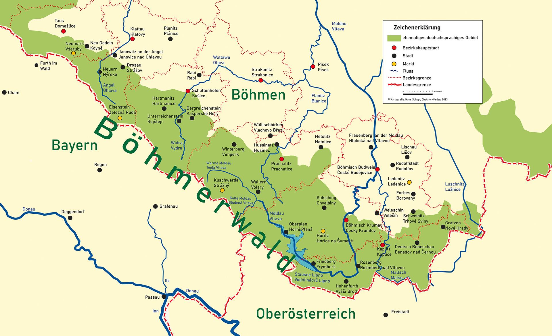 In the following, individual parts of Šumava are presented within the boundaries of political districts from the time of the first Czechoslovak Republic from 1918 to 1945, in which Czechs and Germans lived together for the last time.