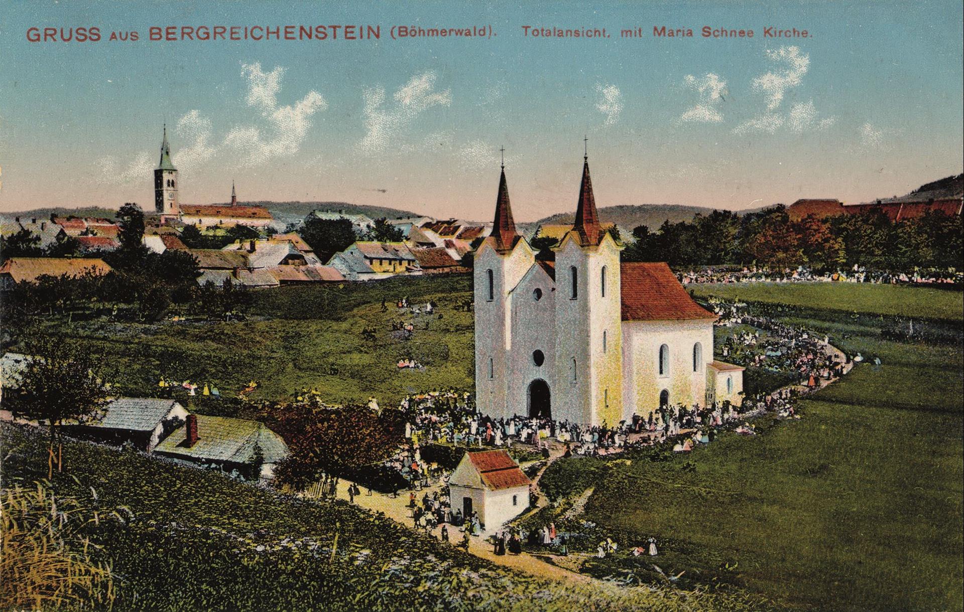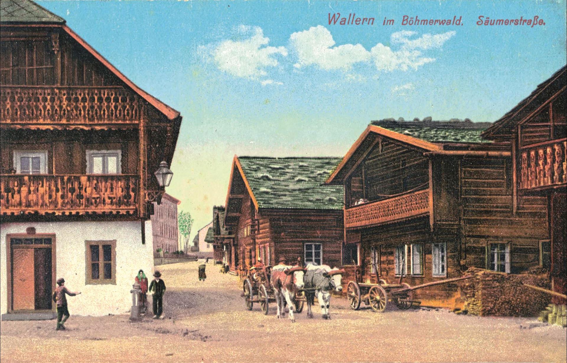 One of the trading stations of another route was the town of Vimperk (Winterberg), where the publishing house of Johann Steinbrener produced prayer books for the whole world in the 19th century. The town of Volary (Wallern) was founded along the Golden Path, once known for its wooden houses built in the Alpine style, which were mostly razed after the Second World War. Two important Protestant and Catholic personalities in church history also came from this area: the reformer Jan Hus, burned at the stake in Constance in 1415, and Saint Jan Nepomuk Neumann, a missionary and bishop in Philadelphia, Pennsylvania, USA.